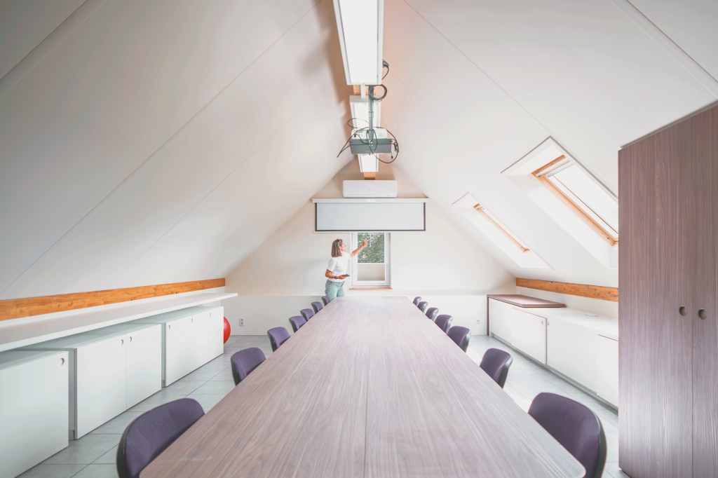 – Un grand placard a été conçu pour accueillir la vingtaine de chaises nécessaires aux réunions.