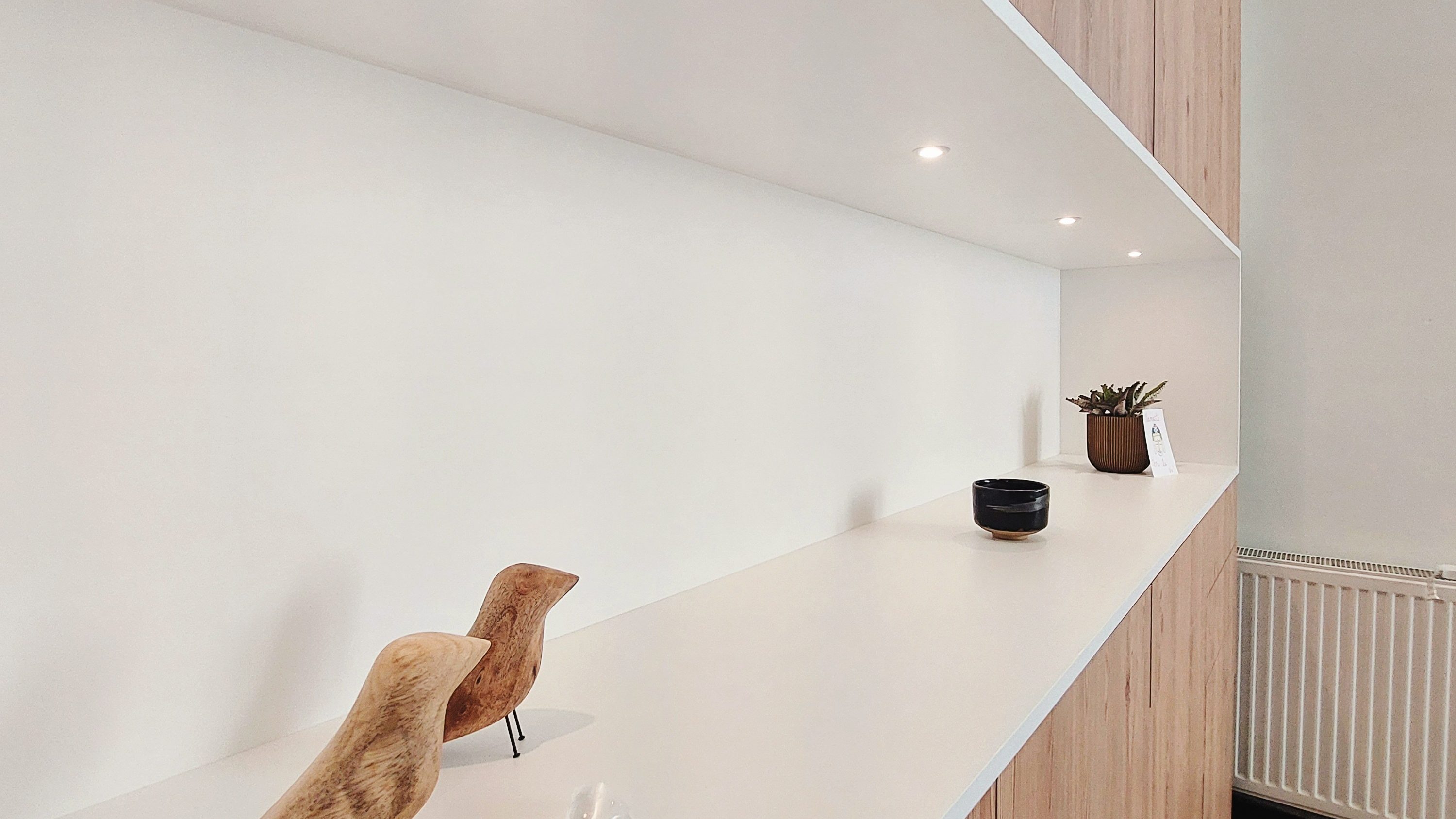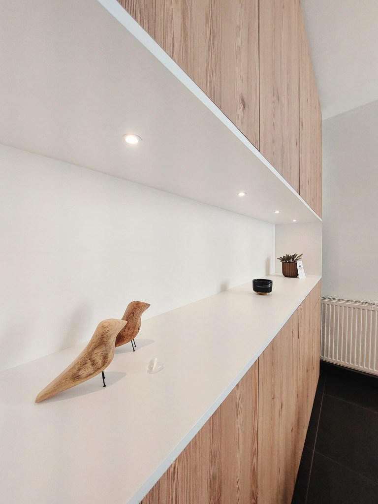 Un autre objectif de ce projet était de parvenir à intégrer un grand meuble de rangements fermés, afin de cacher tout le petit bazar que peut comporter un espace de travail. C’est chose faite! L’espace respire mieux, chaque chose est à sa place et l’ambiance est à présent très paisible.