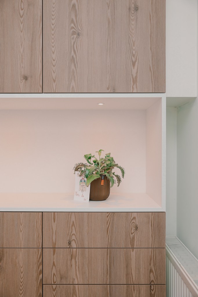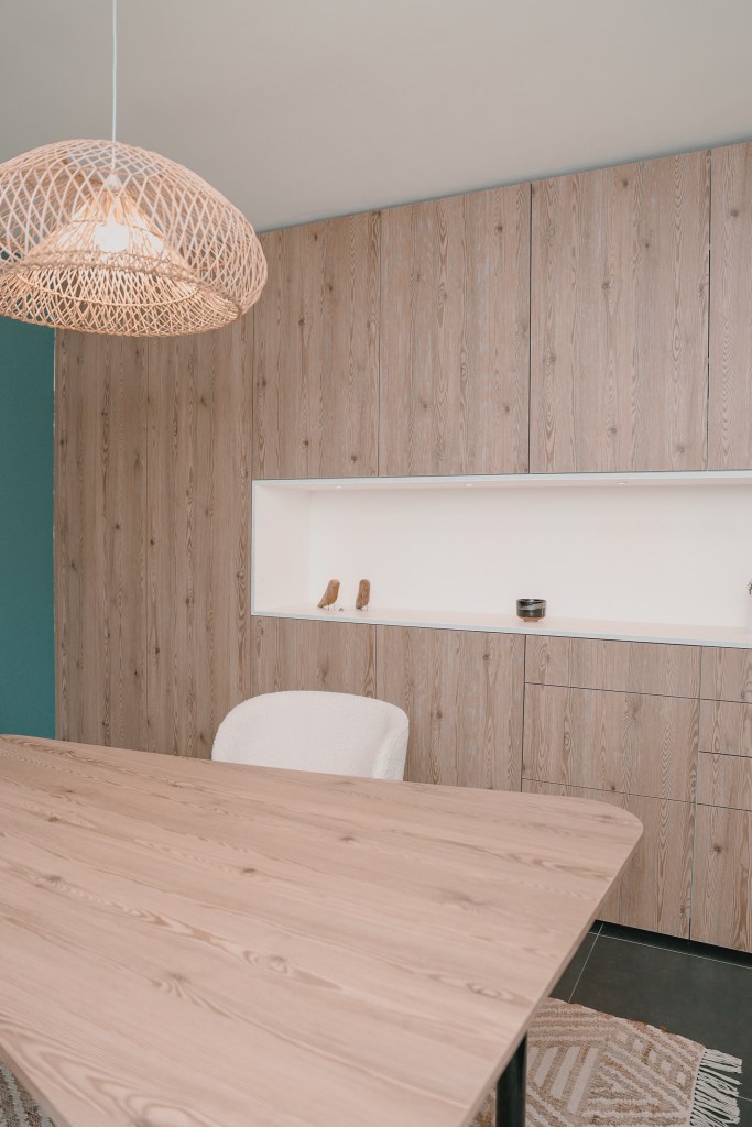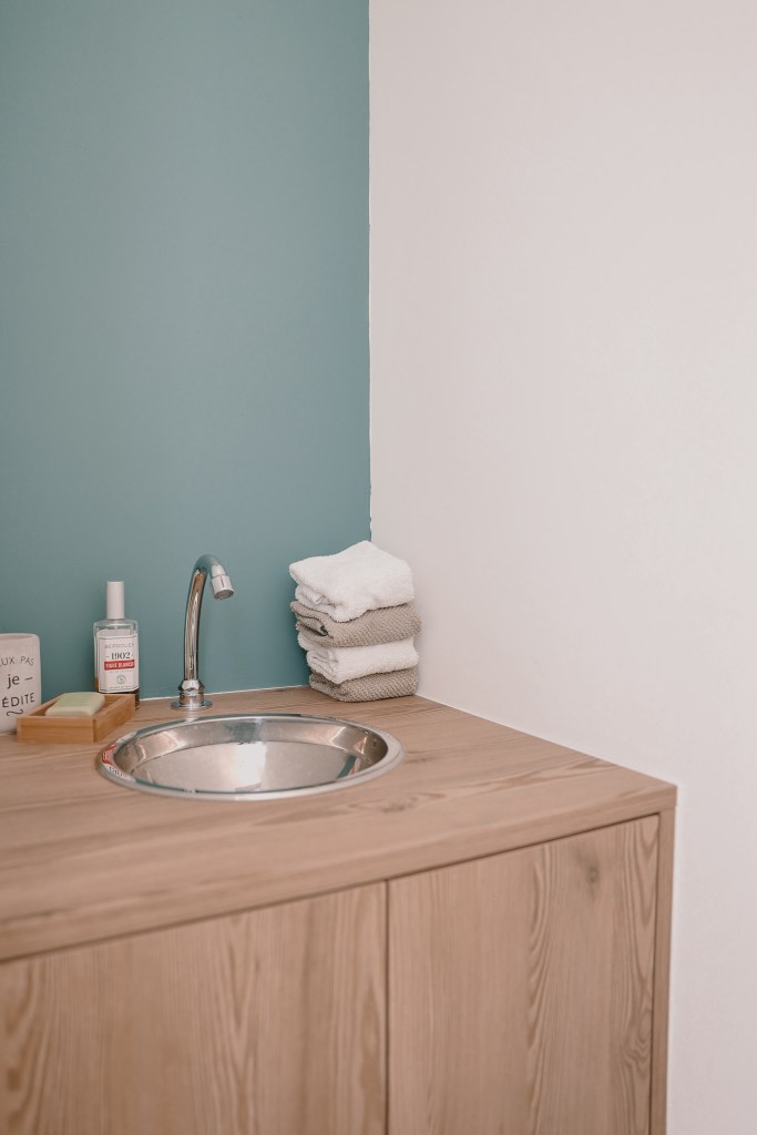 Les couleurs et les matériaux ont été minutieusement sélectionnés afin de correspondre à l’esprit naturel et paisible souhaité par la propriétaire.